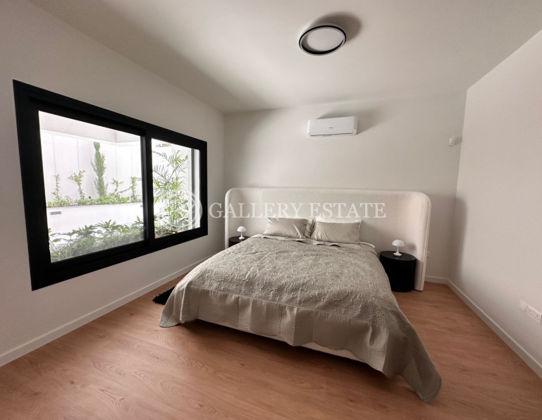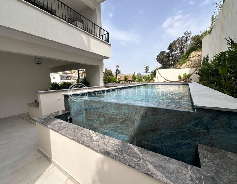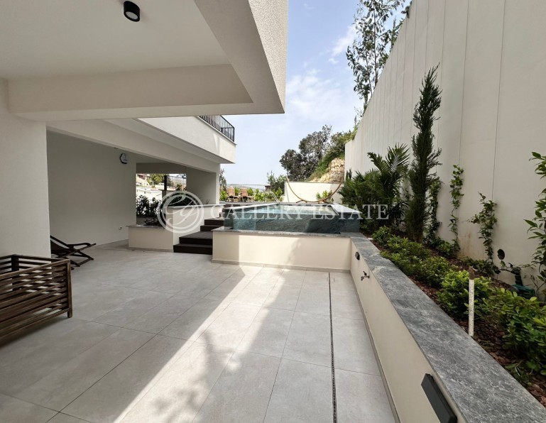 Three bedroom apartment for sale in Germasogeia Green Area, Limassol, with a total area of 278 m2. The apartment is located on the 1st floor and includes three bedrooms, two bathrooms, a kitchen, a living room, a pantry and a spacious veranda of 180 m2. The apartments are equipped with air conditioning in all rooms, central heating, alarm system, CCTV video surveillance system, smoke detectors and a 4 kW photovoltaic system. The apartment is located in a modern residential complex consisting of only 8 high-quality apartments, located in a quiet and prestigious area. The building has an elevator, two covered parking spaces, a saltwater swimming pool and a barbecue area. The complex is built according to European standards, with high-quality finishing materials: aluminum double-glazed windows, European plumbing, ceramic tiles in bathrooms and balconies, laminate flooring in living areas and bedrooms, kitchen surfaces made of high-quality granite. The building has energy efficiency class A, is equipped with a video intercom system, secure entrance doors and a photovoltaic system to save electricity. The complex is located just a few minutes drive from the Agios Athanasios and Germasogeia roundabouts, close to supermarkets, schools, pharmacies, hospitals and all necessary infrastructure. Furniture and household appliances are not included in the price of the apartment.