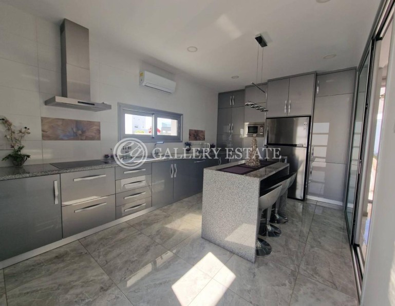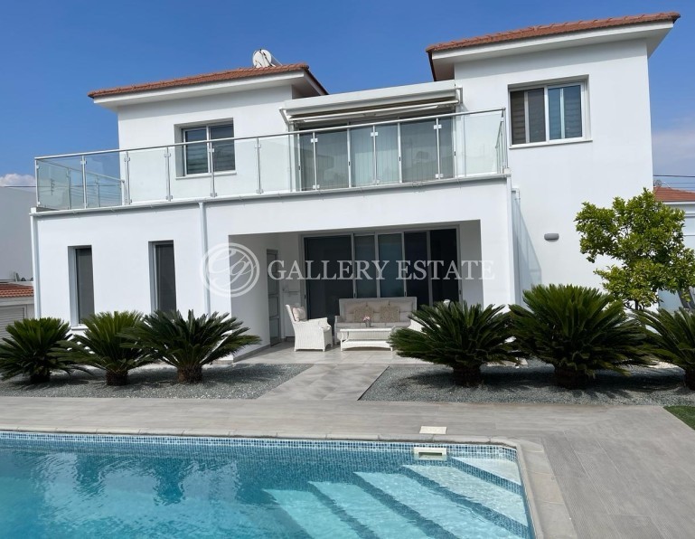 For rent two-storey house with five bedrooms (one of the bedrooms is equipped a luxurious office), swimming pool in a quiet area of the city of Limassol (Parekklisia). The house is located on a large plot with a lovely garden and views. The garden has a wonderful barbecue area. The design of the house was carried out by an Italian designer. Cozy atmosphere, spacious kitchen, equipment with modern appliances. Unlike many villas, there is a detached house for staff with all amenities and communications.