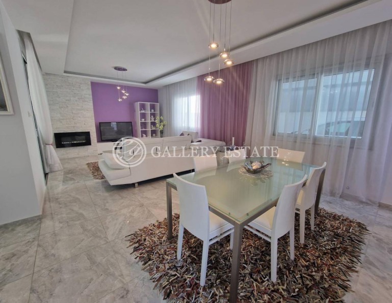 The villa is beautifully furnished, fully air-conditioned, has a fireplace, storage rooms, garage and parking spaces. Covered area 250 sq.m. There are two children's schools (private and municipal) within walking distance. There is an English private children's school not far away. Shops, pharmacies and consumer services are also nearby. Restaurants